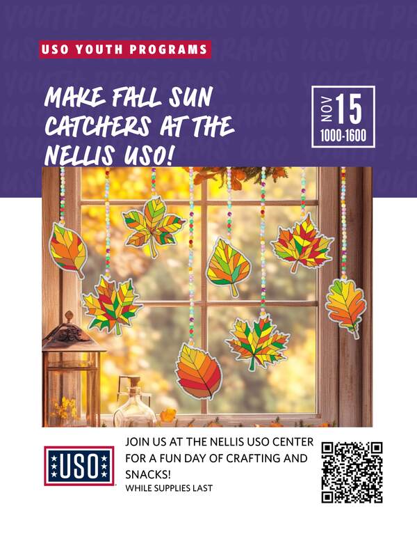 Join us at the Nellis USO to make Fall Sun Catchers! Supplies and snacks provided.