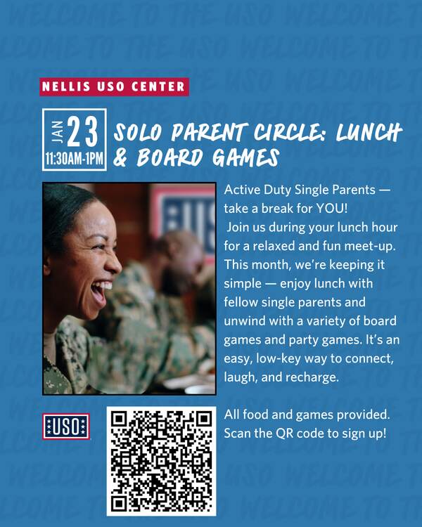 Calling all active duty single parents! Come spend your lunch break at the USO where we’ll be feasting, laughing, and playing party games. Can’t wait to see you there!